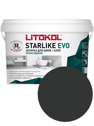 LITOKOL STARLIKE EVO - двухкомпонентный кислотостойкий и щелочестойкий эпоксидный состав для заполнения межплиточных швов шириной от 1 до 15 мм. Может использоваться в качестве клея для укладки стеклянной мозаики и плитки. При производстве эпоксидных составов STARLIKE EVO компанией LITOKOL используется запатентованная технология, при которой цвет состава задается окрашиванием частиц наполнителя. Отсутствие в фуге пигментов в свободном состоянии предотвращает окрашивание плитки в процессе заполнения швов. Благодаря своей пластичности состав легко наносится, полностью заполняя швы. После отверждения на поверхности LITOKOL STARLIKE EVO полностью отсутствуют трещины или раковины. Необычайная лёгкость очистки поверхности плитки после затирки швов, даже по сравнению с обычными цементными затирками.