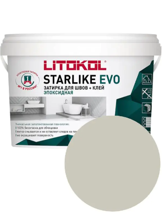 LITOKOL STARLIKE EVO - двухкомпонентный кислотостойкий и щелочестойкий эпоксидный состав для заполнения межплиточных швов шириной от 1 до 15 мм. Может использоваться в качестве клея для укладки стеклянной мозаики и плитки. При производстве эпоксидных составов STARLIKE EVO компанией LITOKOL используется запатентованная технология, при которой цвет состава задается окрашиванием частиц наполнителя. Отсутствие в фуге пигментов в свободном состоянии предотвращает окрашивание плитки в процессе заполнения швов. Благодаря своей пластичности состав легко наносится, полностью заполняя швы. После отверждения на поверхности LITOKOL STARLIKE EVO полностью отсутствуют трещины или раковины. Необычайная лёгкость очистки поверхности плитки после затирки швов, даже по сравнению с обычными цементными затирками.